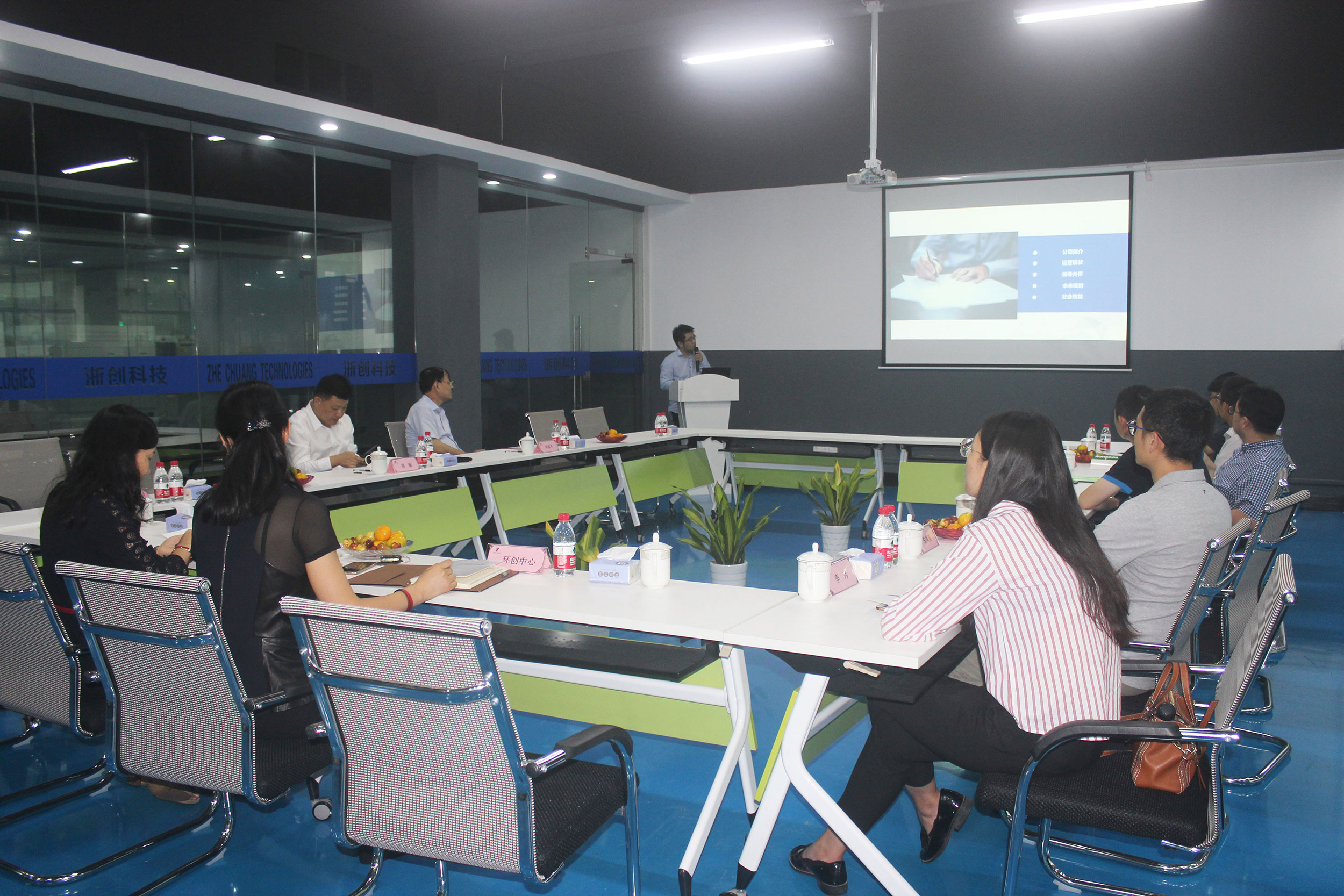 參觀結束后,項敏市長一行在浙創(chuàng)科技會議室進行了座談交流。陶董事長代表浙創(chuàng)科技對項敏市長一行的參訪再次表示了熱烈的歡迎,并提出3D打印的應用推動了企業(yè)創(chuàng)新發(fā)展,節(jié)省社會資源,從經濟效益方面促進企業(yè)從模仿到自主創(chuàng)新。隨后,陶總經理向來訪嘉賓介紹了公司運營情況、未來規(guī)劃以及社會效益。