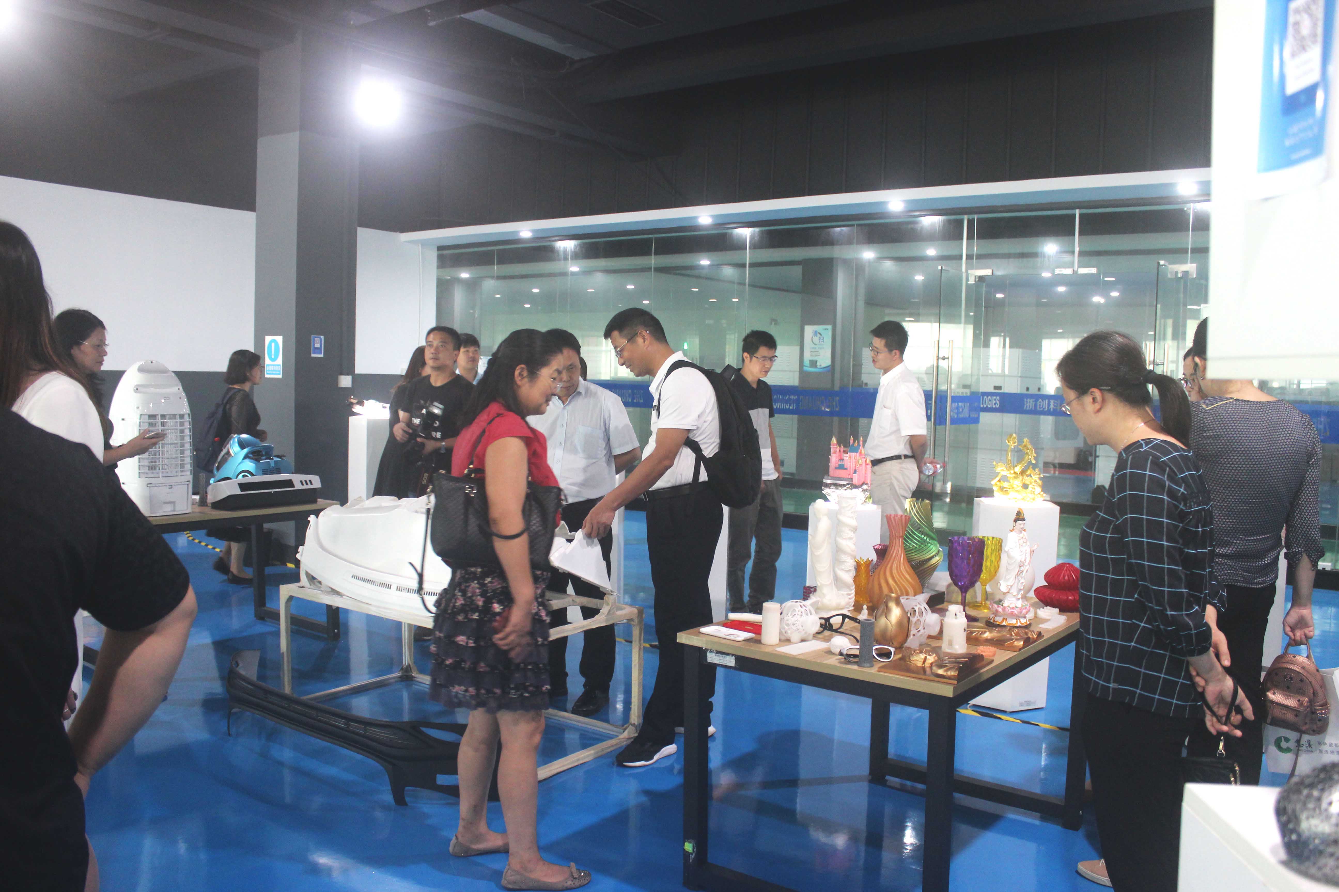 在3D打印樣品間,陶總、魏副總、陶副總向來訪嘉賓展示了3D打印的各種模型,來訪嘉賓對優(yōu)質(zhì)的家電、汽車配件、建筑模型、玩具手辦表現(xiàn)出了濃厚的興趣,并就模型生成的整個過程向浙創(chuàng)科技領(lǐng)導(dǎo)進(jìn)行了詳細(xì)的詢問。