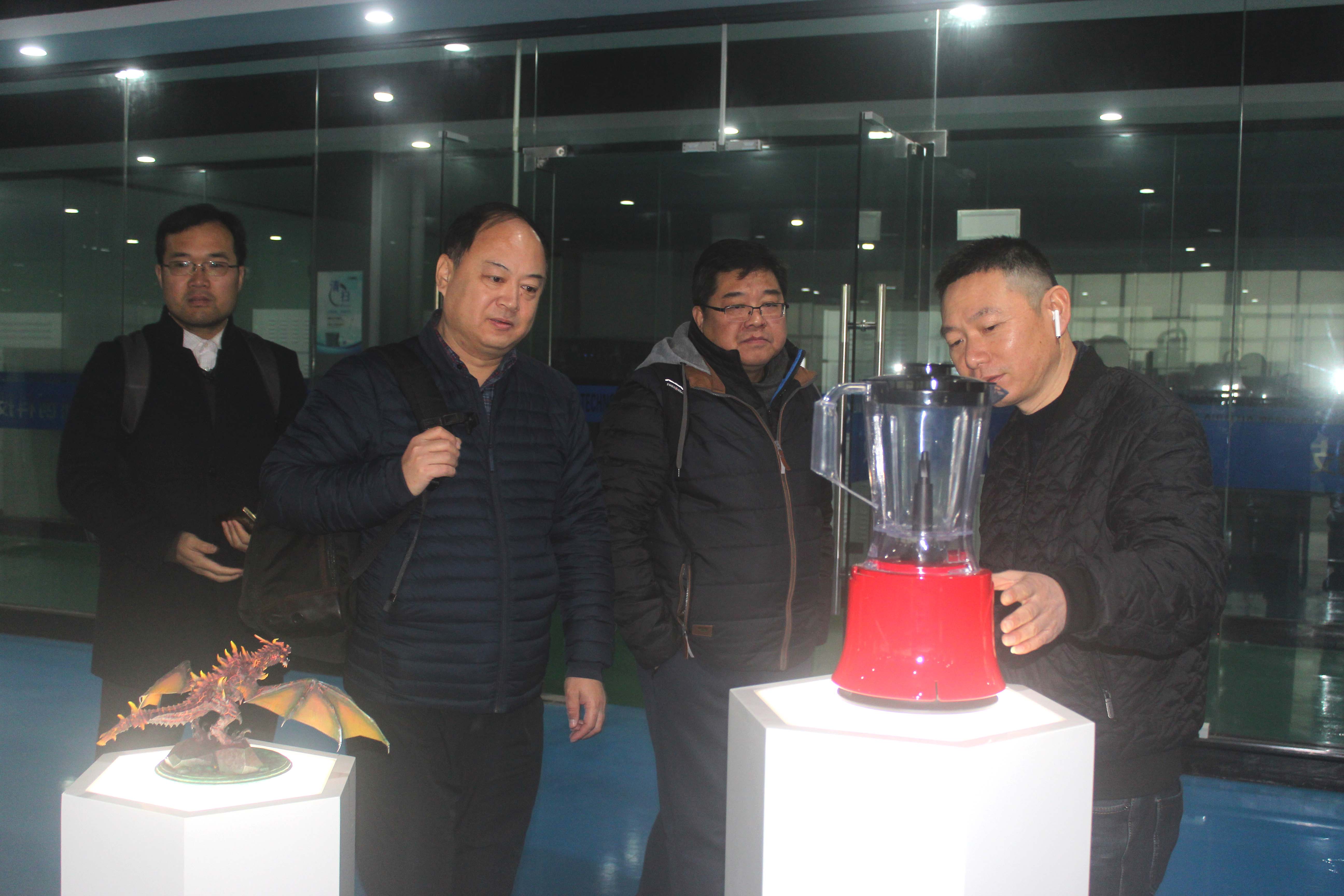 隨后,考察團(tuán)在陶董的陪同下,參觀了3D打印材料、3D打印車間,詳細(xì)了解了工業(yè)級3D打印機(jī)的工作原理??疾靾F(tuán)經(jīng)過參觀了我們自主研發(fā)的材料和機(jī)器設(shè)備,更加認(rèn)可了公司的實(shí)力,對我們未來的發(fā)展有了更足的信心。